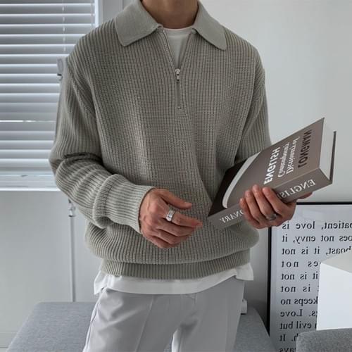 慵懶風 翻領針織 半拉鍊毛衣