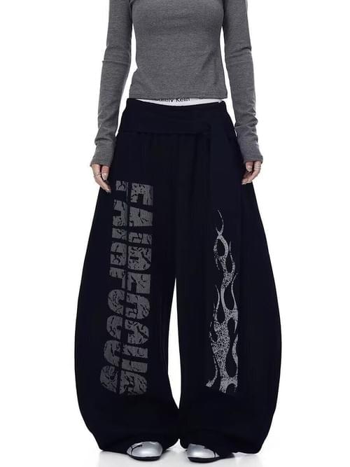 美式復古寬鬆闊腳褲