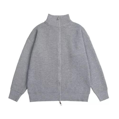 慵懶風寬鬆立領拉鍊外套針織毛衣
