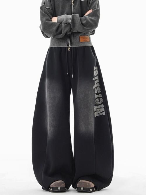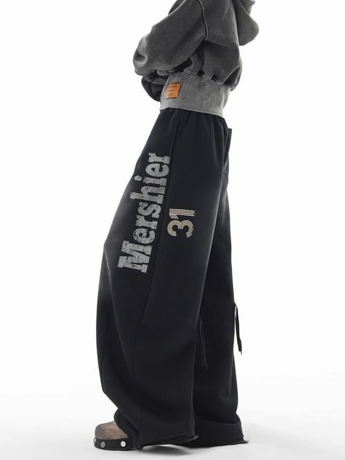 美式復古噴漆寬鬆運動褲