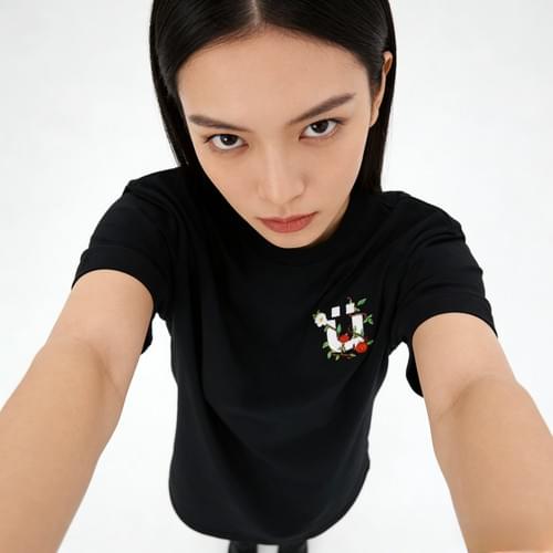 中式刺繡薔薇花短袖T恤